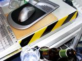 Man beachte das neue Regal über der rechten Box, und das geniale schwarz-gelbe Warnklebeband.